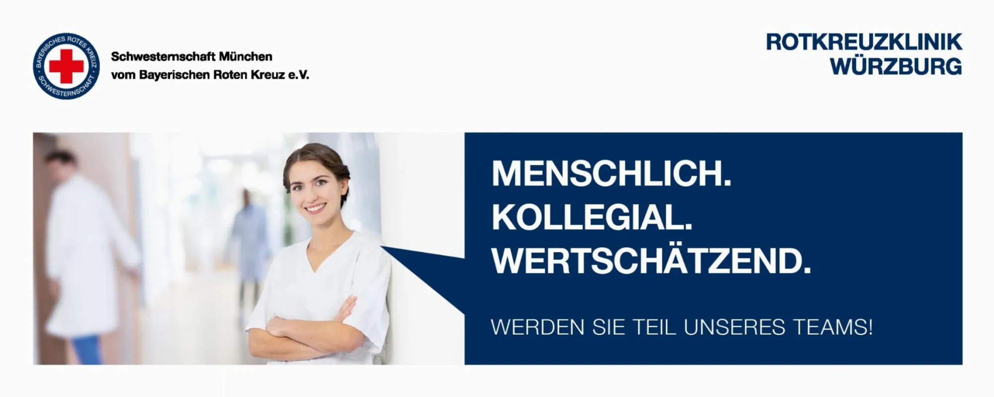 Frau Simone Fabiunke, Pflegebereichsleitung, Tel.: 0931-3092400, Rotkreuzklinik Würzburg, Kapuzinerstraße 2, 97070 Würzburg. Wir freuen uns auf Ihre vollständige Online-Bewerbung inkl. Lebenslauf, Anschreiben mit Angabe Ihres frühestmöglichen Eintrittstermins und Ihren Zeugnissen. Weitere Informationen erhalten Sie unter rotkreuzklinik-wuerzburg.de/karriere. Vor Aufnahme einer Tätigkeit in unserer Klinik muss gem. § 23a i.V.m. § 20 Abs. 9 Infektionsschutzgesetz (lfSG) ein ausreichender Impfschutz oder Immunität gegen Masern vorgelegt werden.
